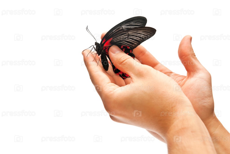 Красивая бабочка в руках человека