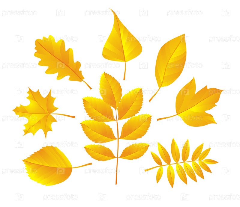 Различные осенние листья на белом фоне