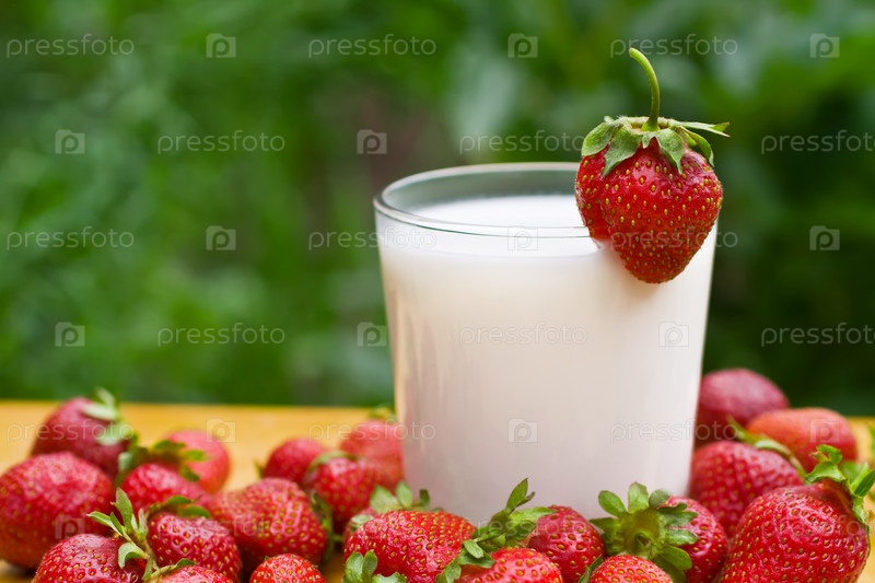 Стакан молока и клубника