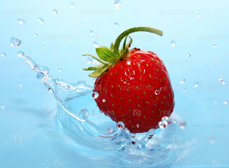 Спелая клубника падает в воду
