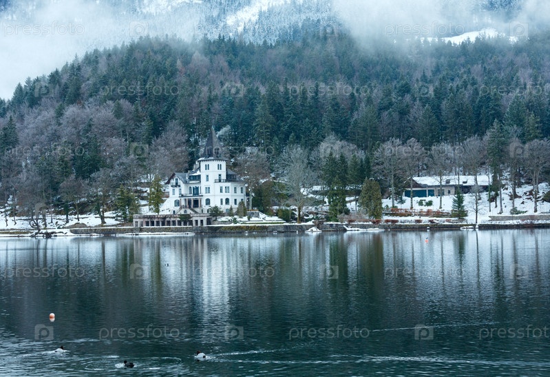 Вид на альпийское озеро зима