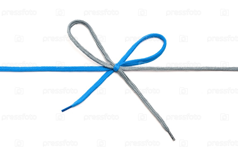 Два шнурка, завязанные в бант. Изоляция на белом фоне. Крупный план