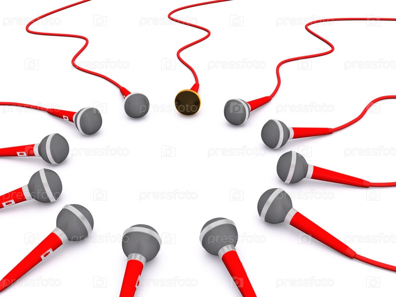 Иллюстрация микрофонов, выложенных по кругу на белом фоне