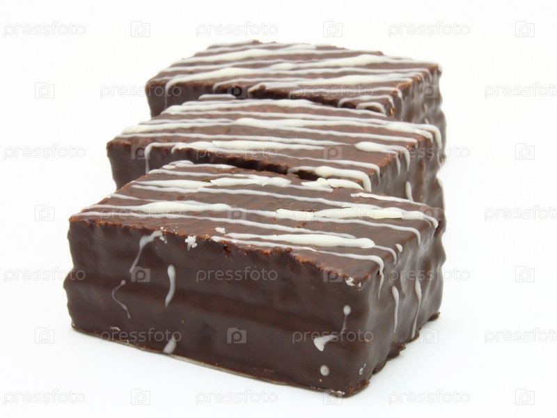 Вафли в шоколадной глазури на белом фоне