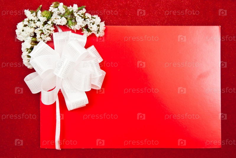 Поздравительная открытка с бантом и цветами