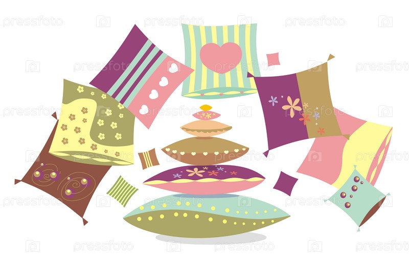 Разноцветные подушки на белом фоне