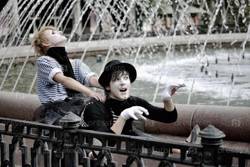 Два мима возле фонтана