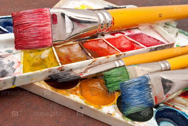 Акварельные краски с кистями