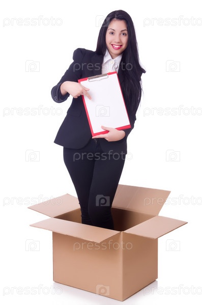 Женщина с планшетом в коробке