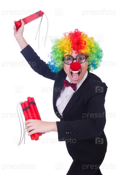 Бизнесмен клоун, изолированный на белом фоне