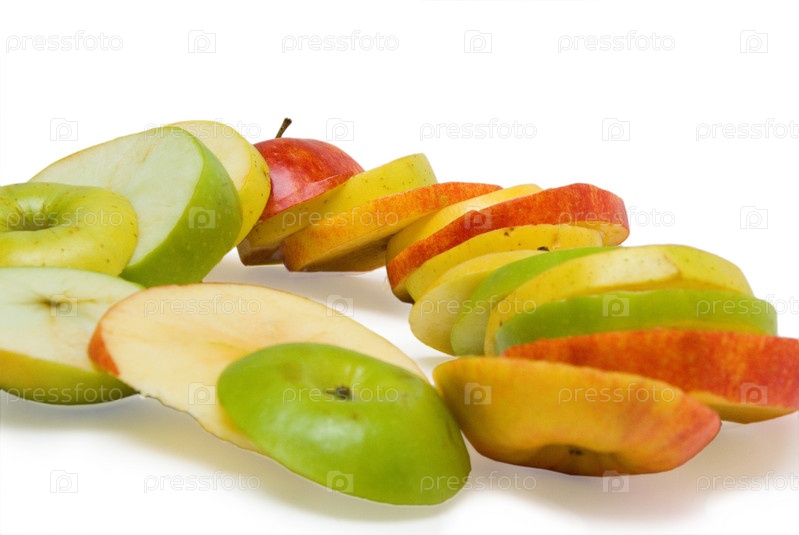 Дольки яблок на белом фоне