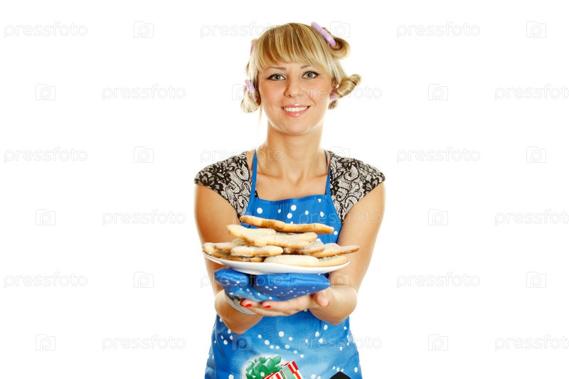 Молодая девушка держит тарелку со свежевыпеченным десертом