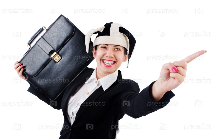 Бизнес-леди клоун, изолированная на белом фоне