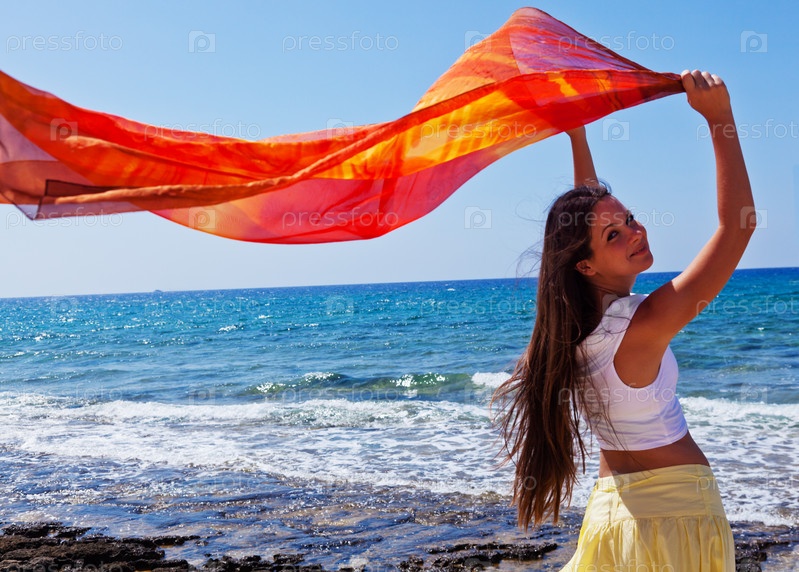 Молодая женщина с парео на побережье