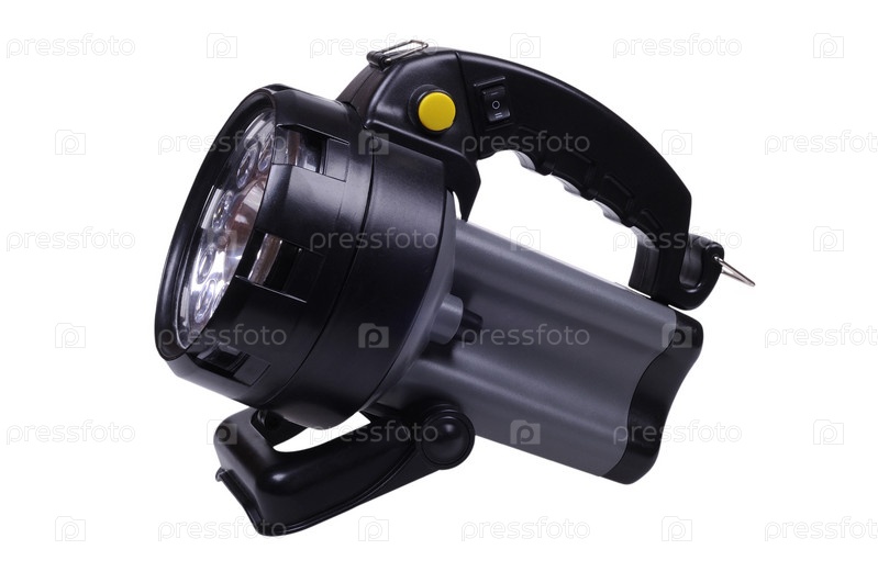 Мощный фонарик на белом фоне