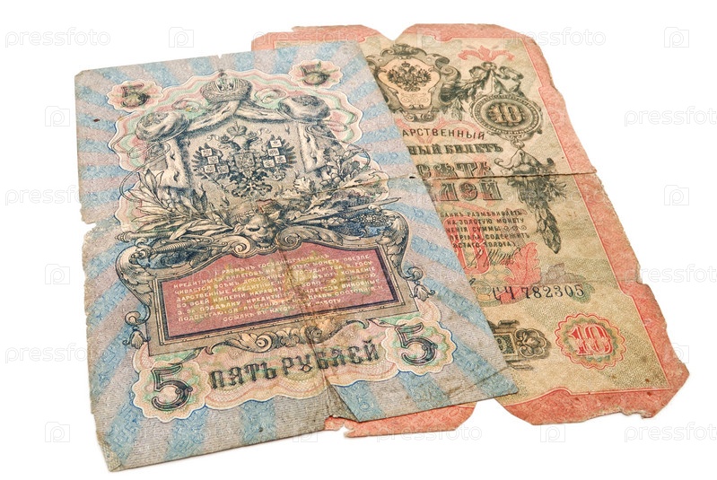 Русские деньги 1909 года. на белом фоне
