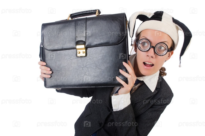 Бизнес-леди клоун, изолированная на белом фоне