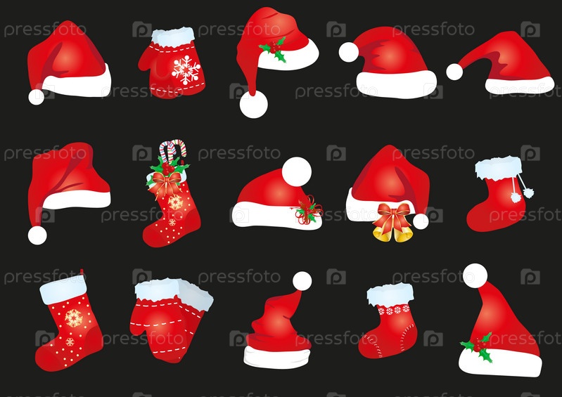 Колпаки Санта Клауса, рождественские носочки и варежки