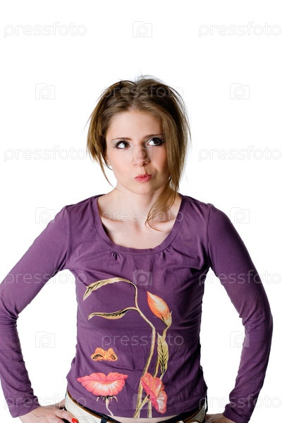 Портрет молодой женщины на белом фоне