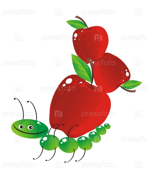 Гусеница с красными яблоками на белом фоне, вектор