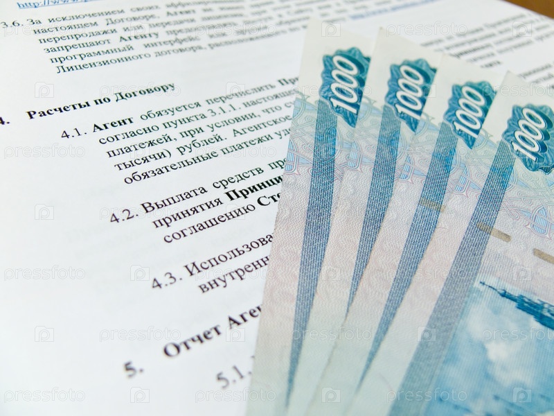 Страница договора, денежные купюры и Гражданский кодекс РФ