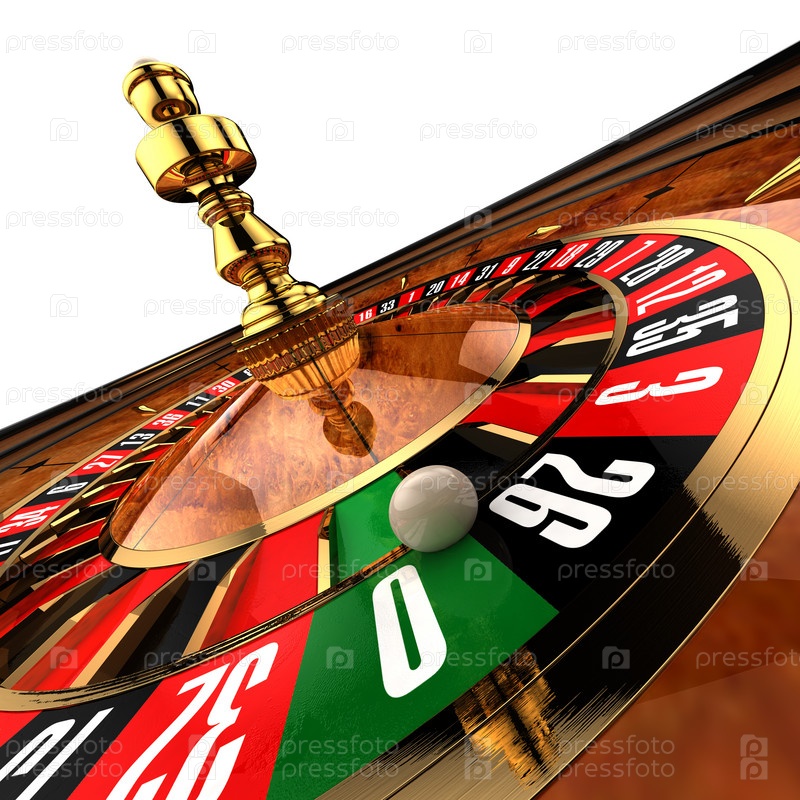 Рулетка и белый шарик на зеро на белом фоне