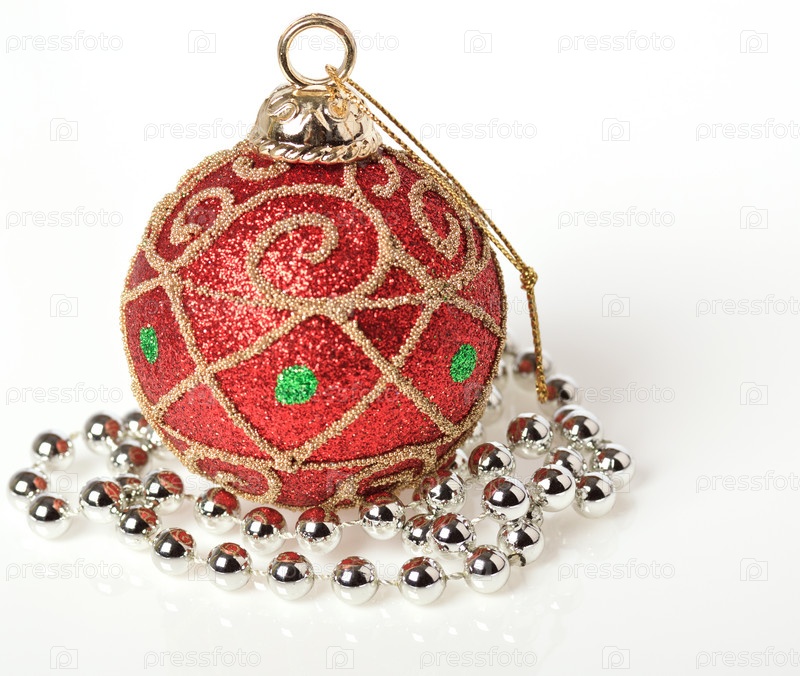 Красный новогодний шар, украшенный бусами