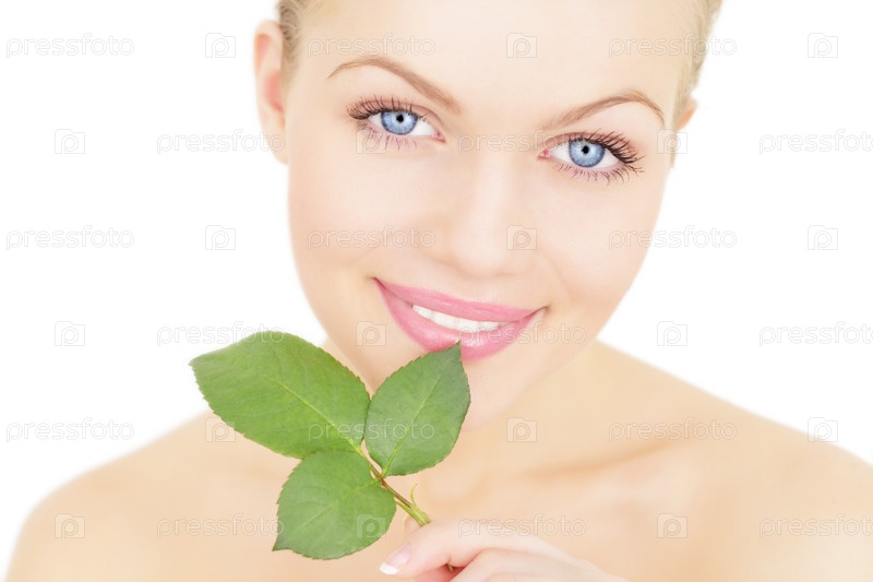 Обворожительная девушка держит зеленые листья