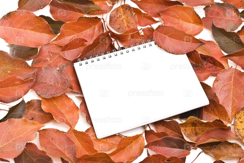 Блокнот, лежащий на осенних листьях
