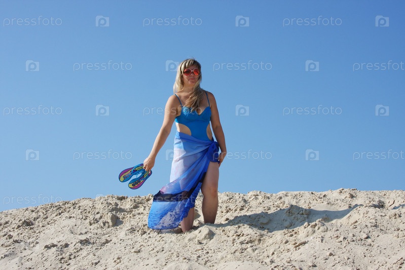 Молодая девушка, идущая по песку