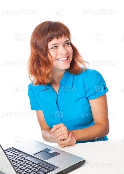 Красивая улыбающаяся девушка с ноутбуком
