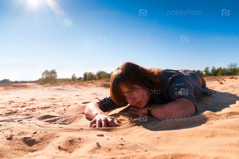 Девушка лежит на песке и наслаждается природой
