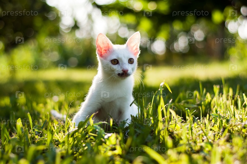 Белый котенок в траве