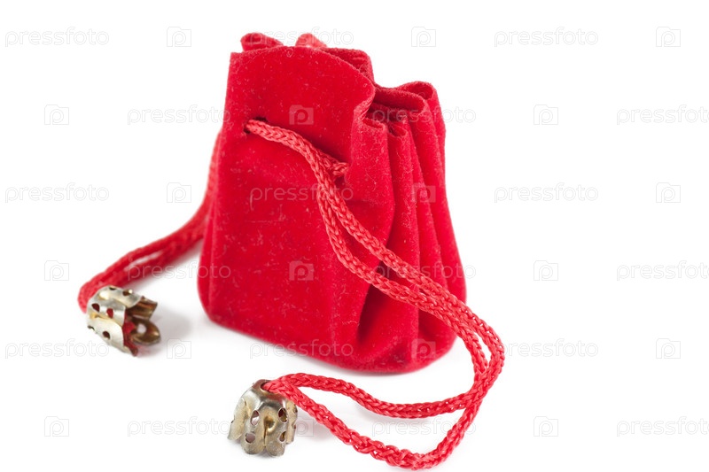 Маленькая красная сумочка для ювелирных изделий, изолированная на белом