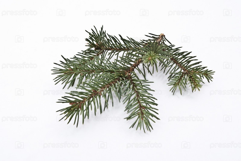 Еловая веточка на белом фоне