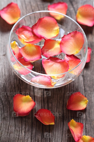 Стеклянная чаша с цветочными лепестками