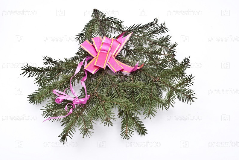 Ветка пихты, украшенная бантами