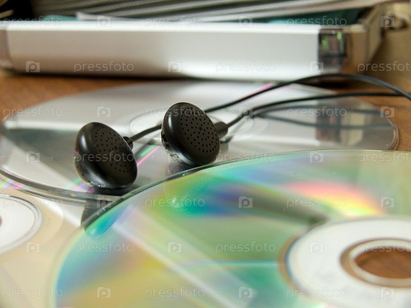 Черные стерео наушники на компакт-дисках
