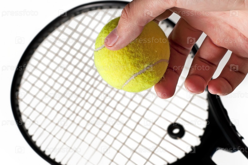 Теннисная ракетка и мяч на белом фоне