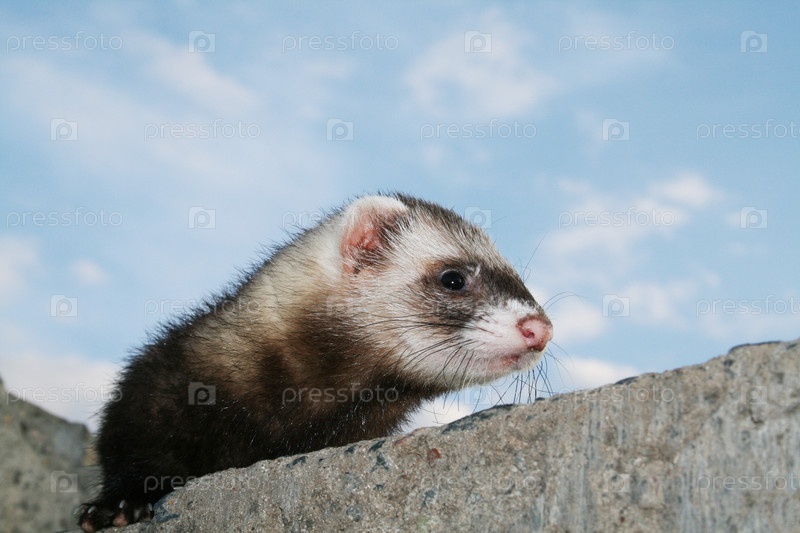 Хорек на фоне голубого неба