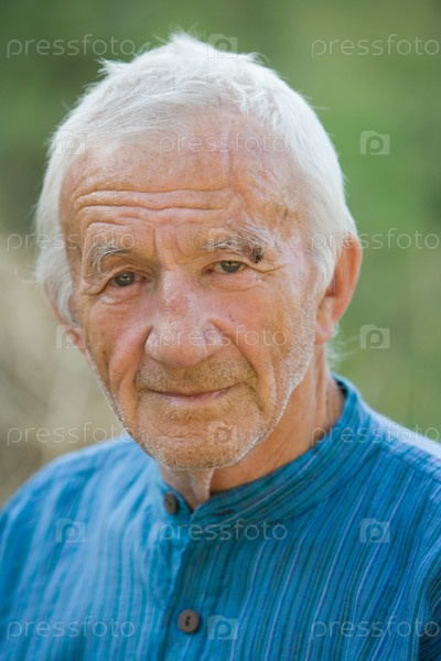 Пожилой мужчина в синей кофте