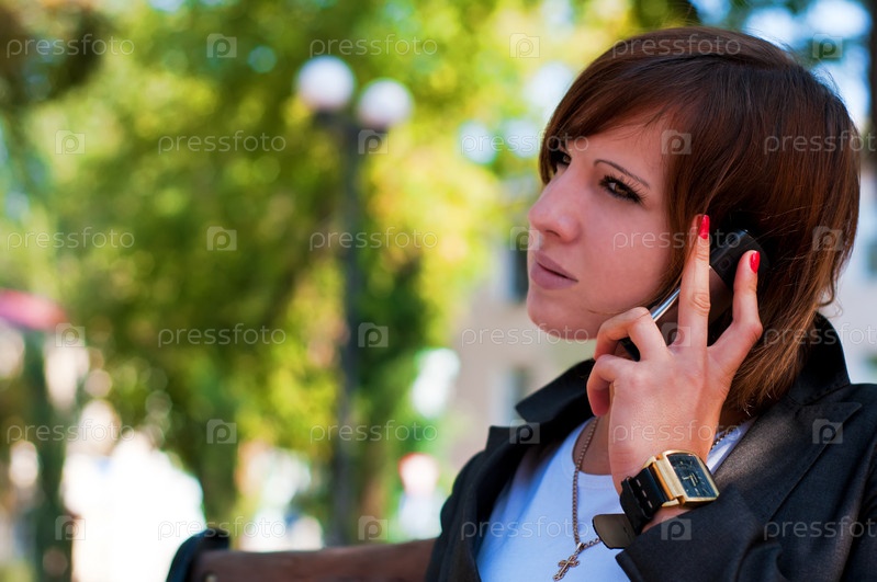 Молодая девушка разговаривает по телефону в парке