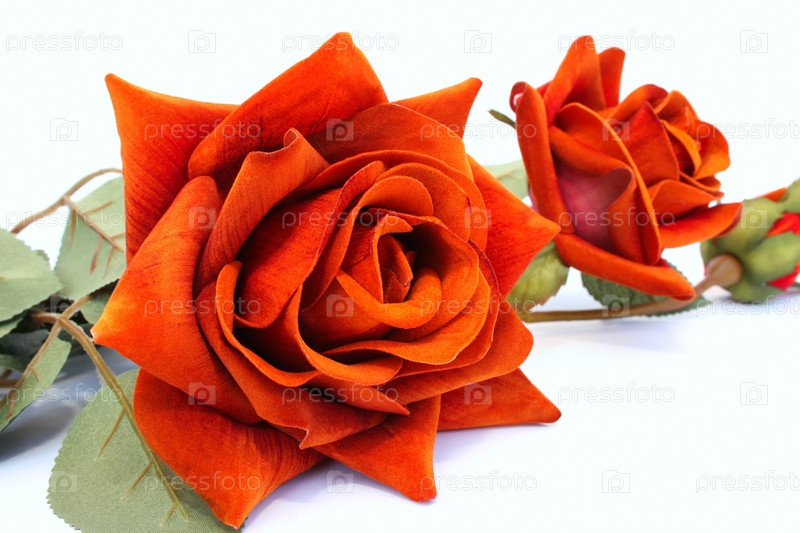 Две красные розы на белом фоне