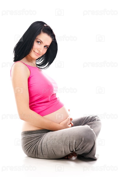 Беременная женщина, сидящая на полу