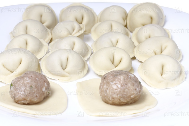 Пельмени ручной работы на белом фоне
