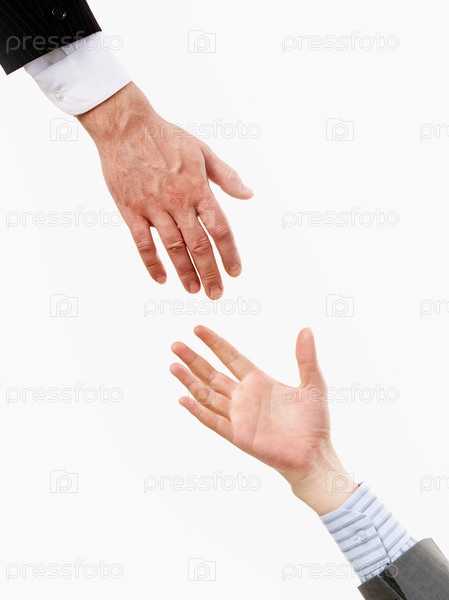 Два бизнесмена протягивают друг другу руки для рукопожатия