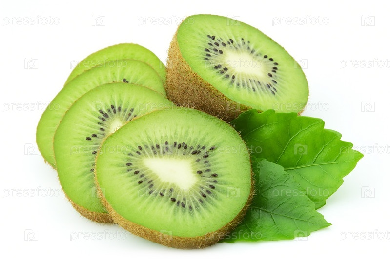 Ломтики киви с листьями на белом фоне