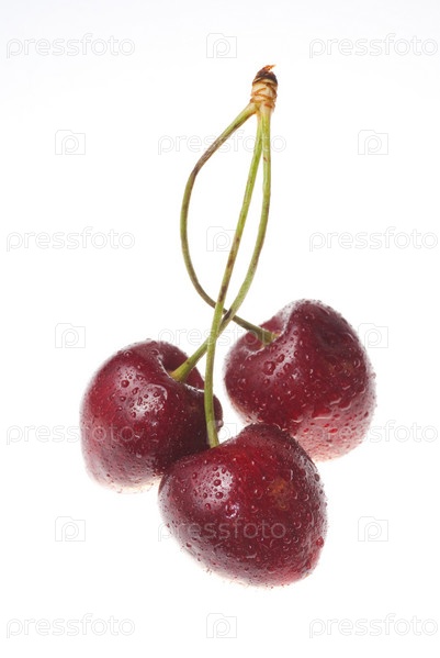 Три ягоды черешни на белом фоне