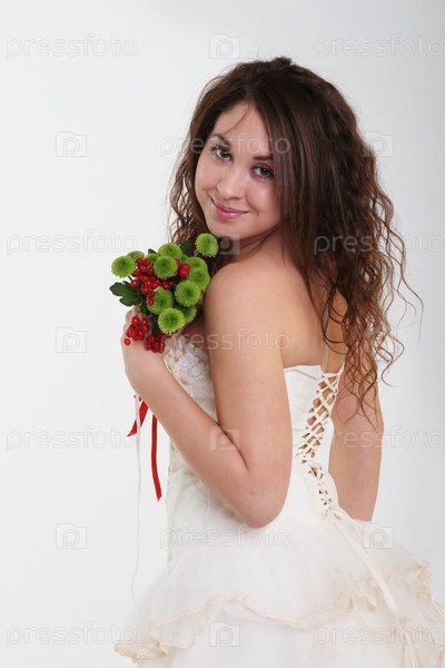 Портрет счастливой невесты с букетом цветов
