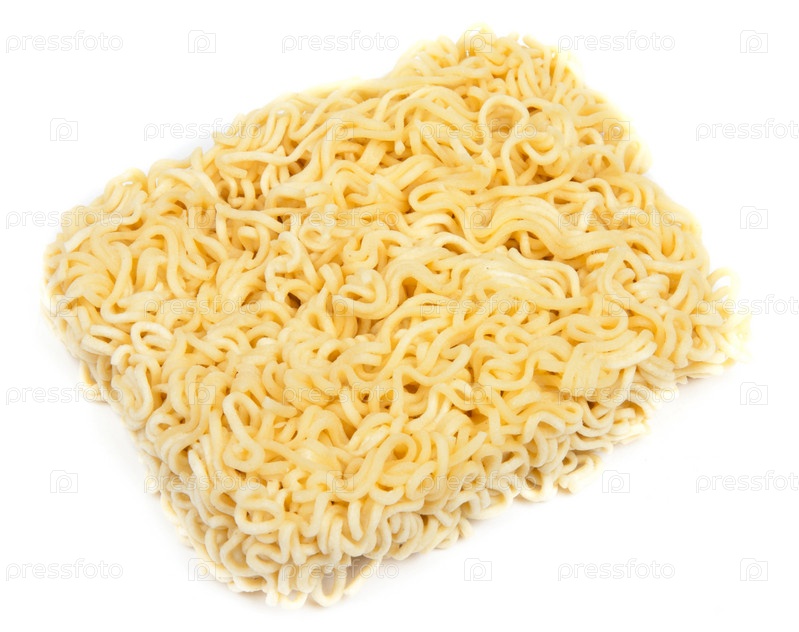 Сухая лапша быстрого приготовления на белом фоне